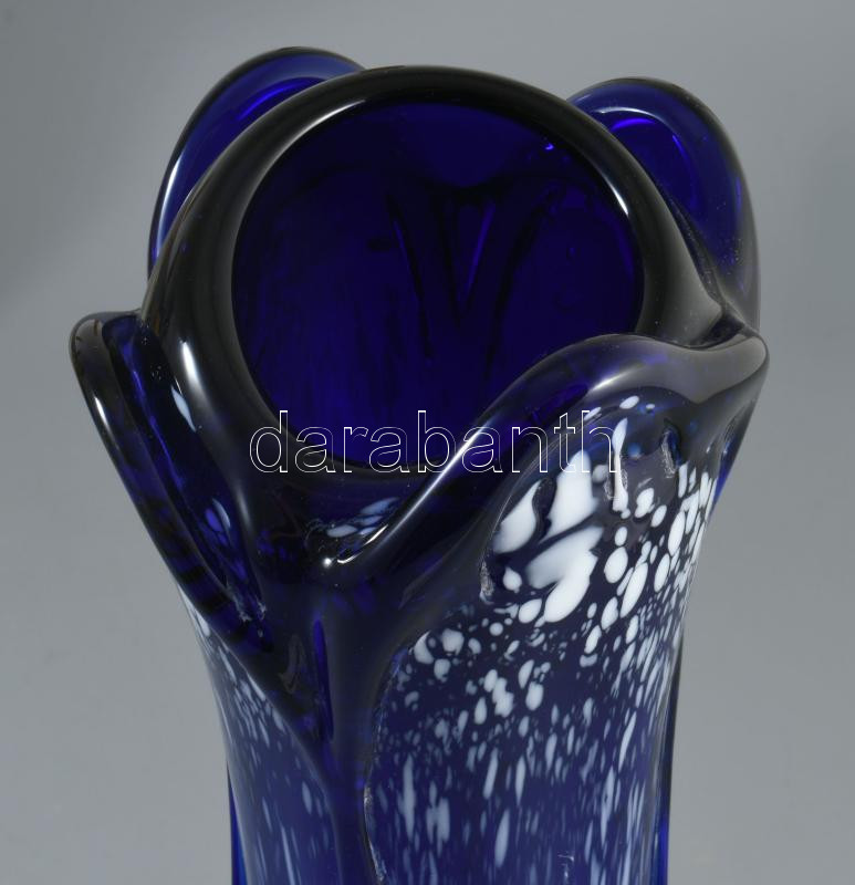 Nagyméretű cseh szakított üveg váza, anyagában színezett, m: 35,5 cm