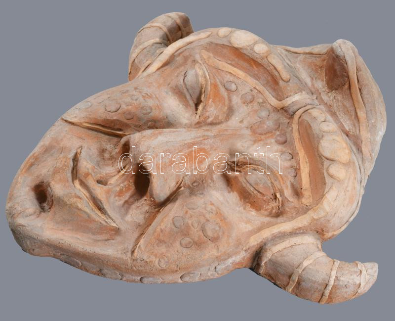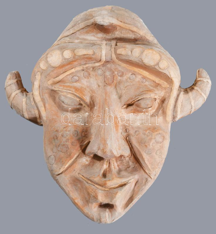 Antik ördögfejes kerámia falimaszk, 26x26 cm