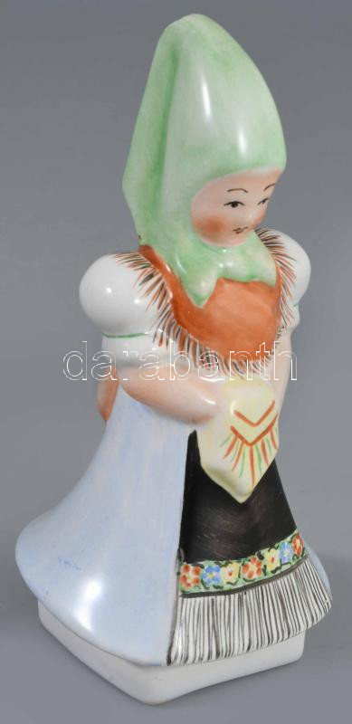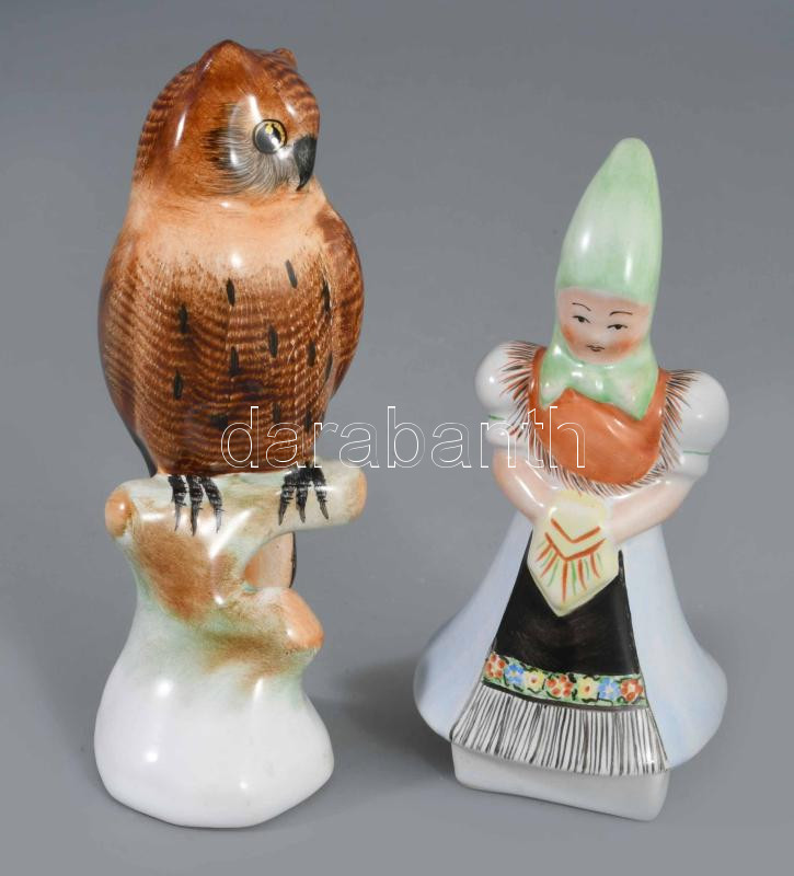 Bodrogkeresztúri bagoly és népi ruhás lány, jelzett, m: 12,5 cm