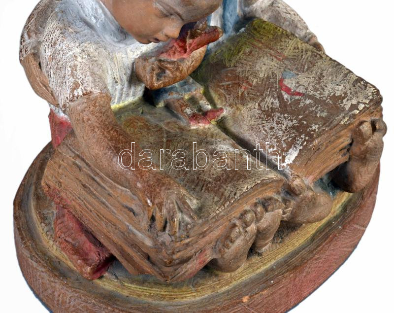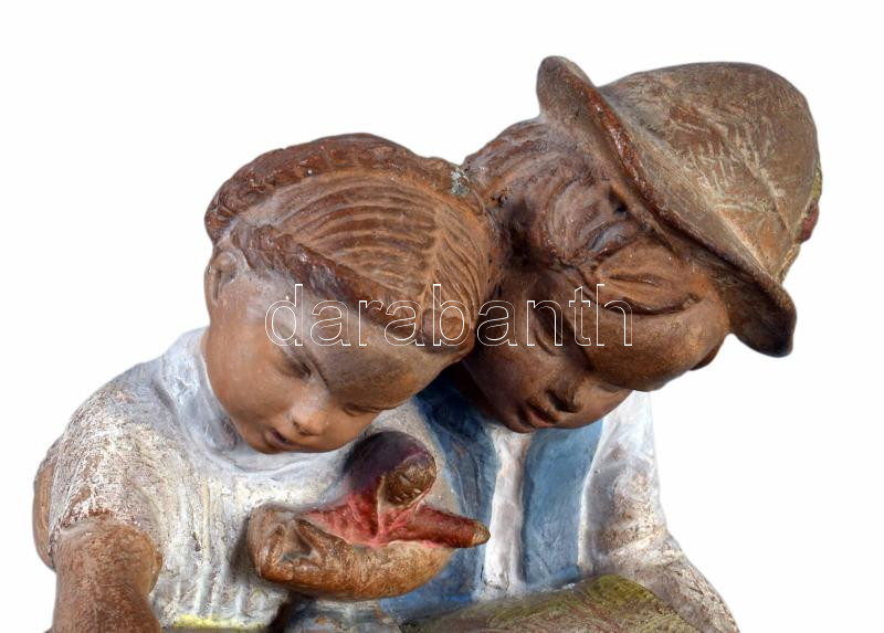 Gondos József (1909-1987): Olvasó gyerekek, festett kerámia, , jelzett, m: 15x15 cm