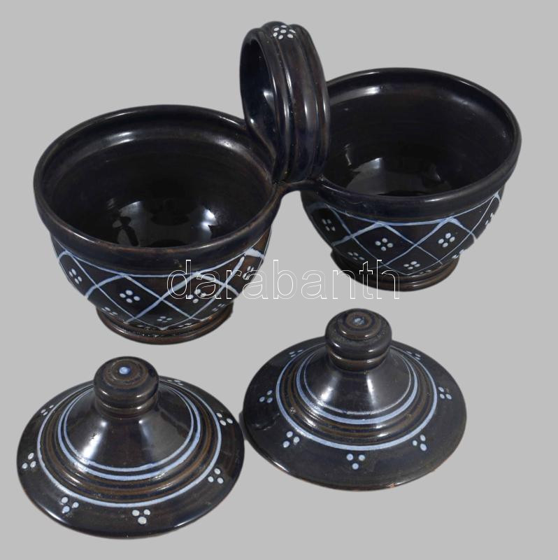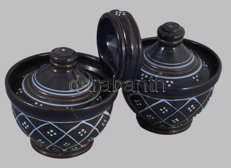 Jelzett mázas kerámia fedeles sótartó, 25x15 cm