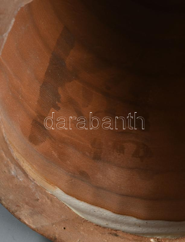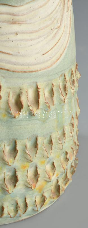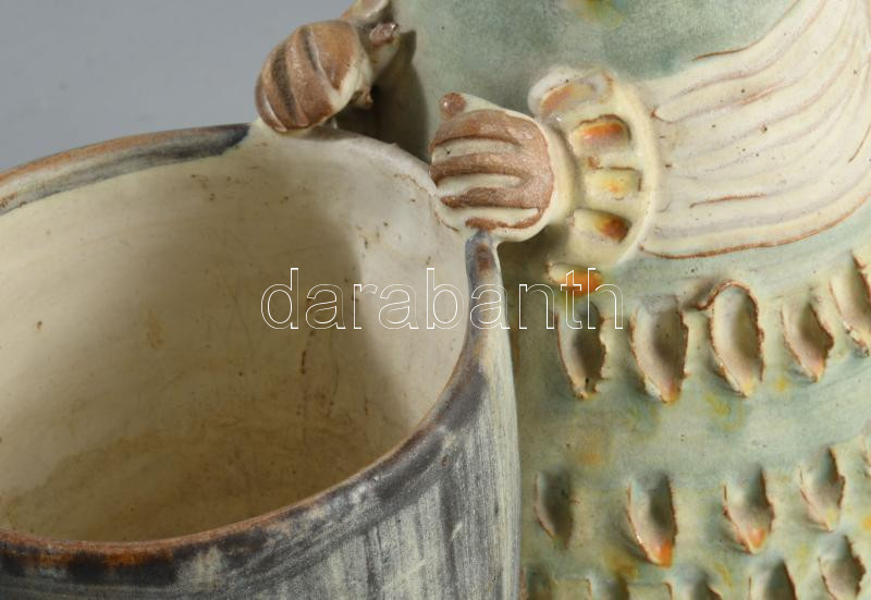 Kiss Roóz Ilona (1920-2010): Díszváza, kaspó figurával. Mázas kerámia, kézzel festett, jelzett, hibátlan 27 cm