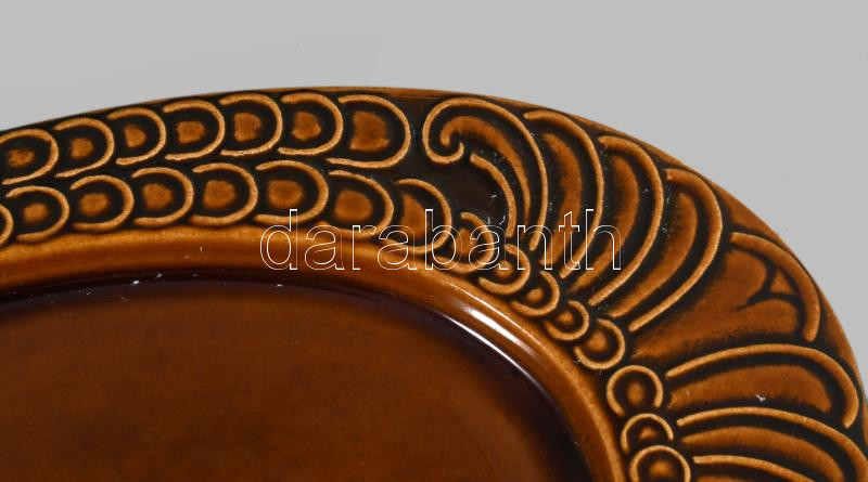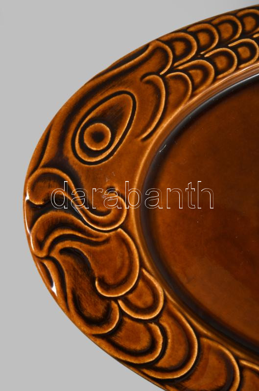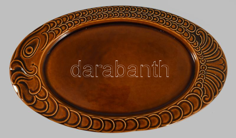 Mázas halas díszítésű halszervírozó tál, jelzés nélkül, hibátlan, 37x21 cm
