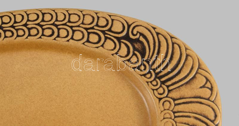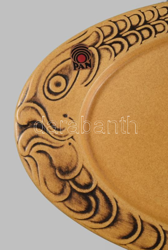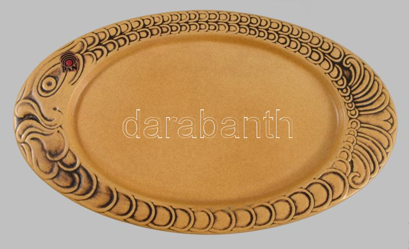 Mázas halas díszítésű halszervírozó tál, jelzett, hibátlan, 37x22 cm