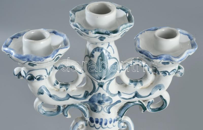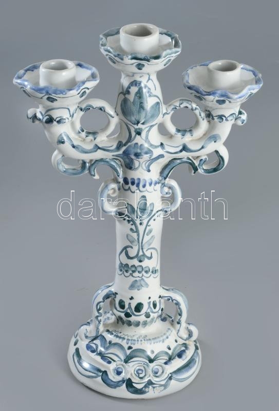 Mázas kerámia háromágú gyertyatartó, hibátlan, m: 35 cm