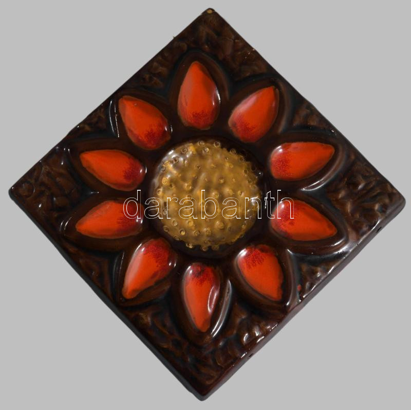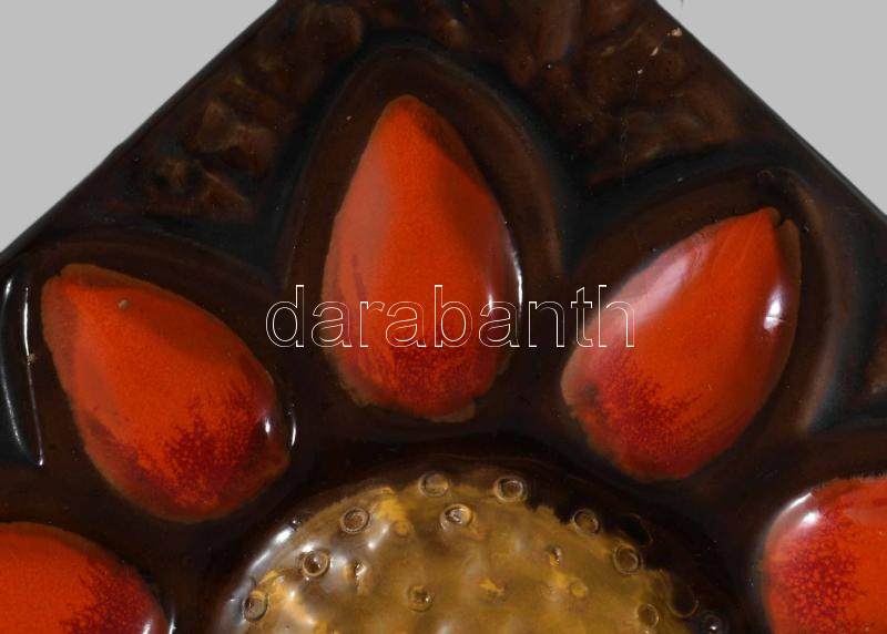 Napraforgó mintás kerámia falidísz. Jelzés nélkül, 23x23 cm