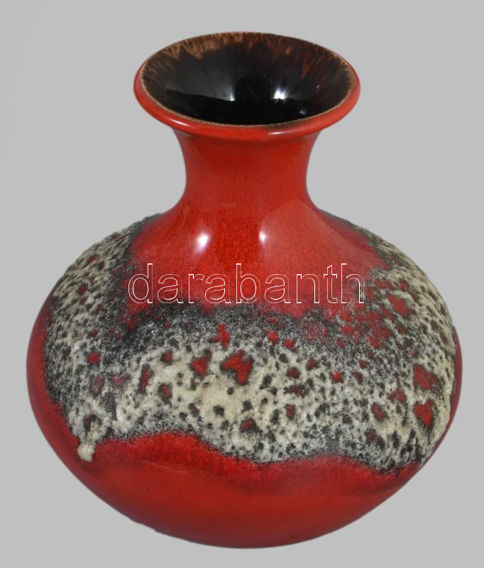 Retro német kerámia váza, lávamázas díszítéssel, jelzett, hibátlan, m: 18 cm