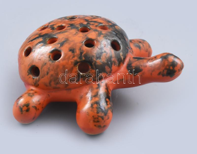 Tófej kerámia ikebana teknős. Kézzel festett, jelzett, hibátlan. 15x14 cm