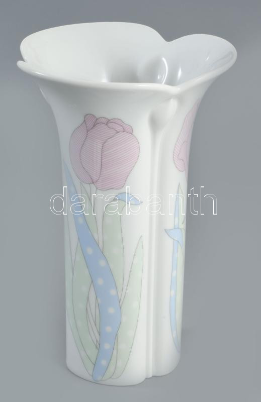 Arzberg vintage modern virágmintás váza, jelzett, hibátlan, m: 19,5 cm