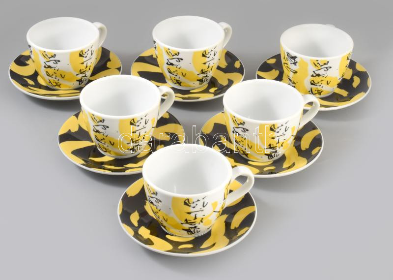 Eschenbach modern stílusú 6 darab kávés csésze alátéttel, jelzett, hibátlan, d: 14,5 cm