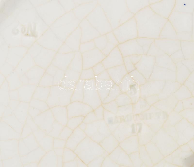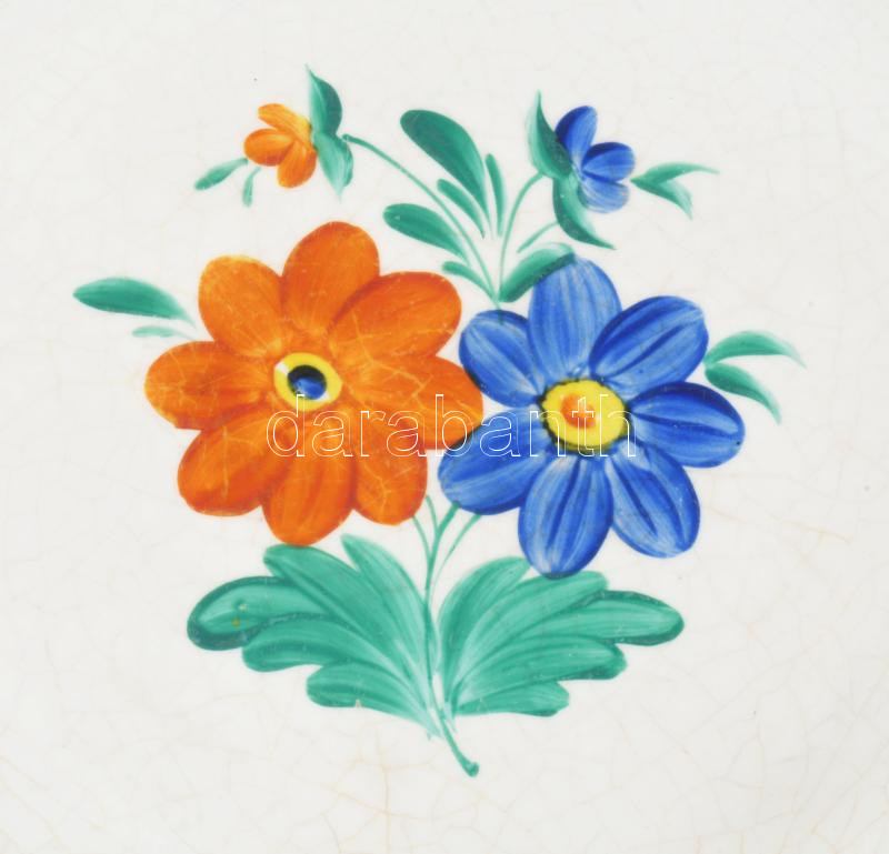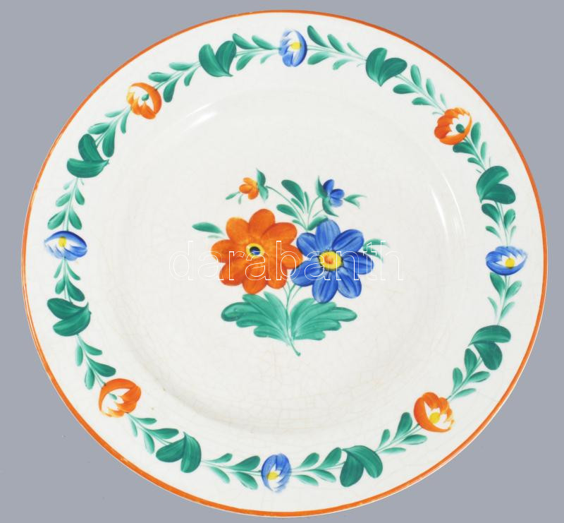 Hardmuth antik virágmintás dísztál, jelzett, erős mázrepedéssel, d: 29 cm