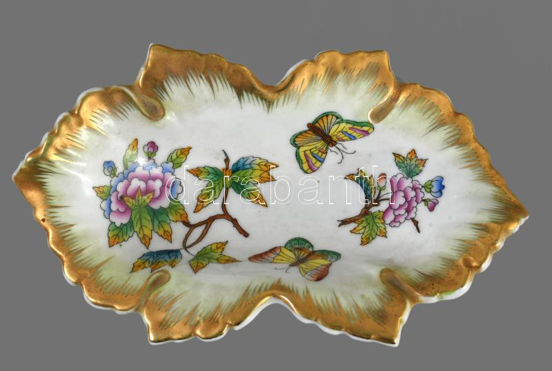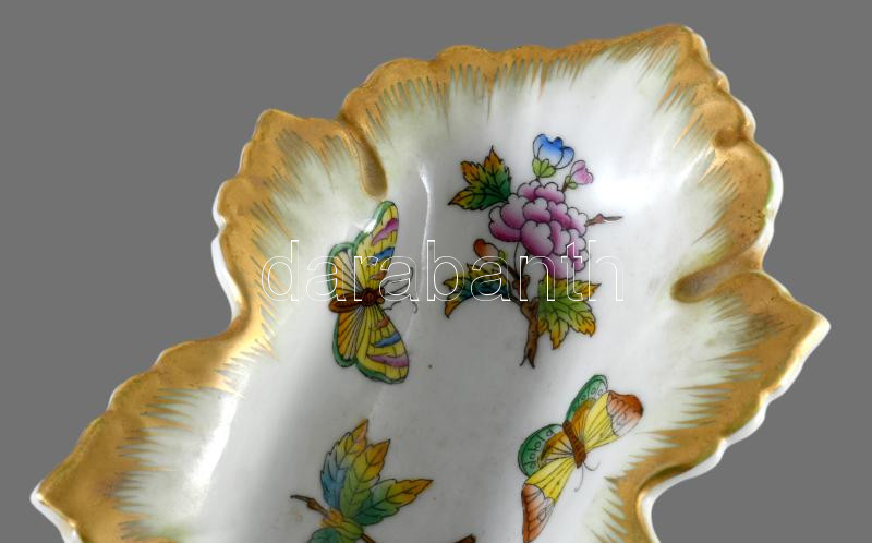 Herendi Viktória mintás levél alakú tálka. Jelzett, hibátlan, h: 15 cm