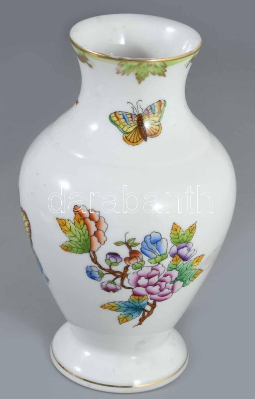 Herendi Viktória mintás váza, jelzett, aranyozáson kis kopással, m: 16 cm