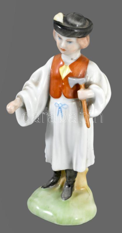 Herendi favágó fiú. Jelzett, kézzel festett, hibátlan, m: 14,5 cm