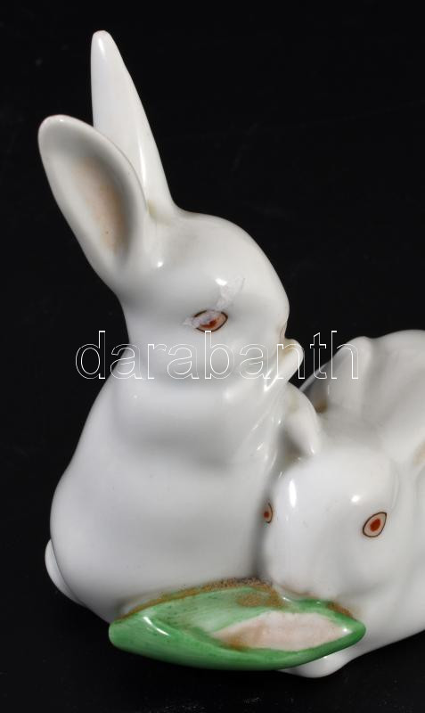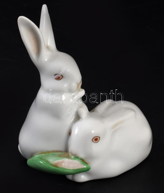 Herendi nyúlpár kukoricával. Jelzett, hibátlan, m: 8,5 cm