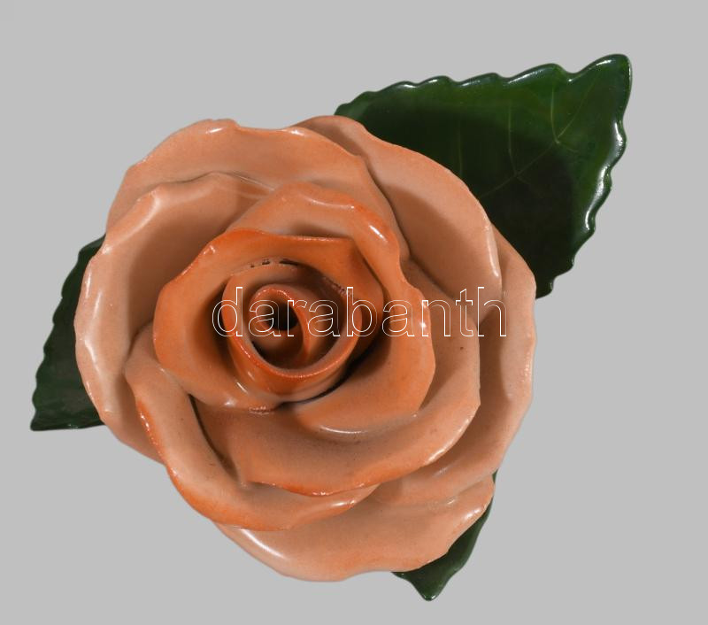 Herendi vörös rózsa. Jelzett, kis minimális pattogzással, 8x9 cm