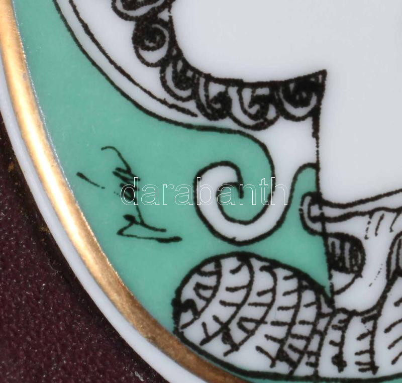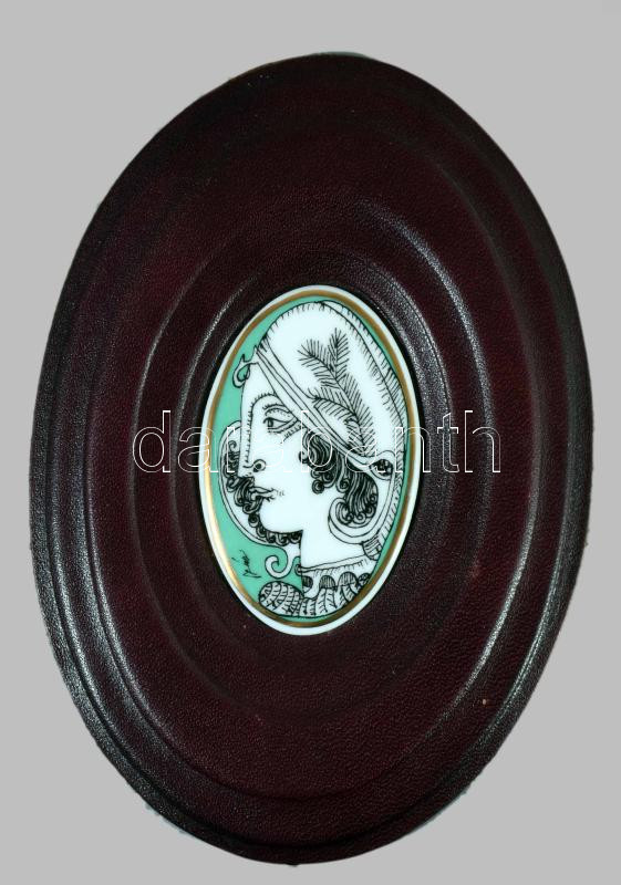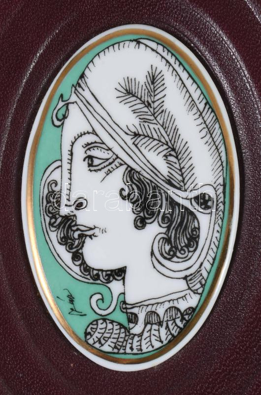 Hollóházi porcelán Szász Endre által tervezett mintával díszített plakett, jelzett, hibátlan, 6,5x4 cm