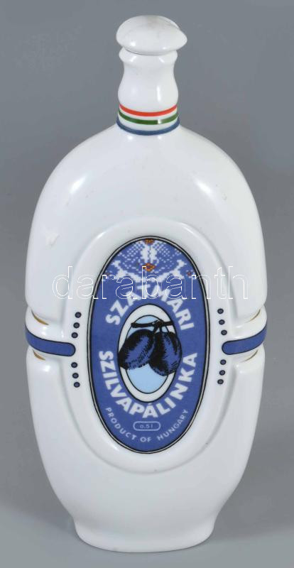 Hollóházi porcelán Szatmári szilvapálinkás üveg. Matricás, jelzett, hibátlan. 25 cm