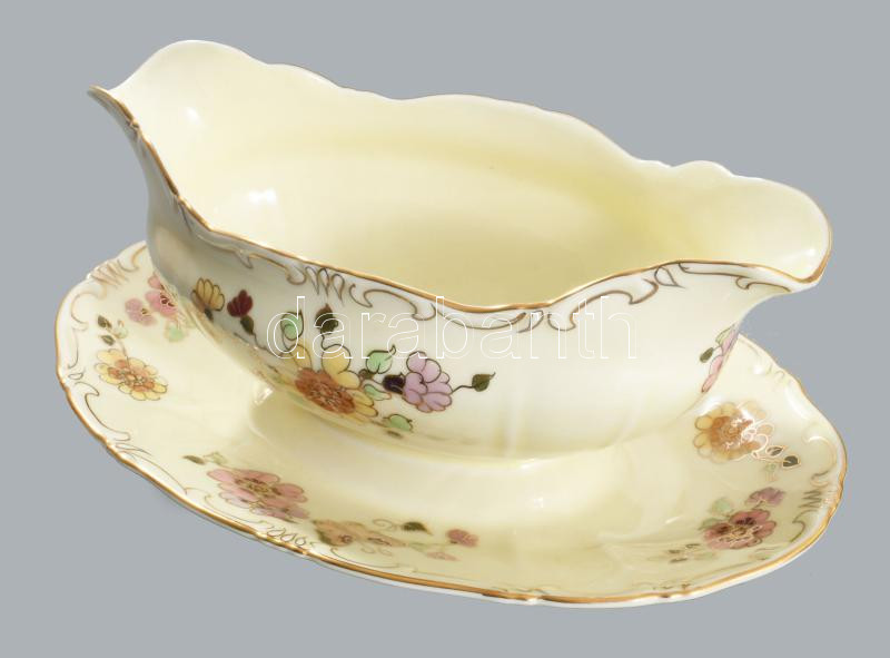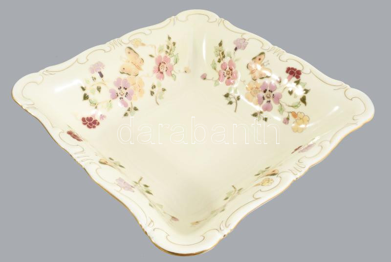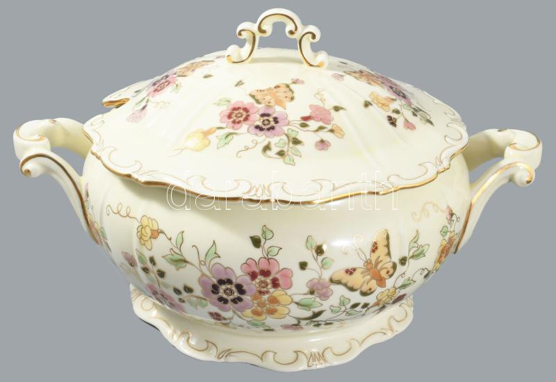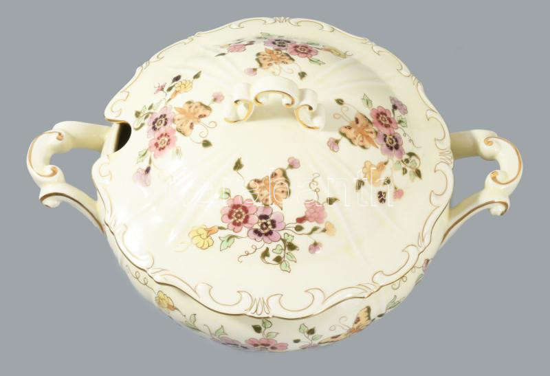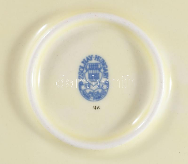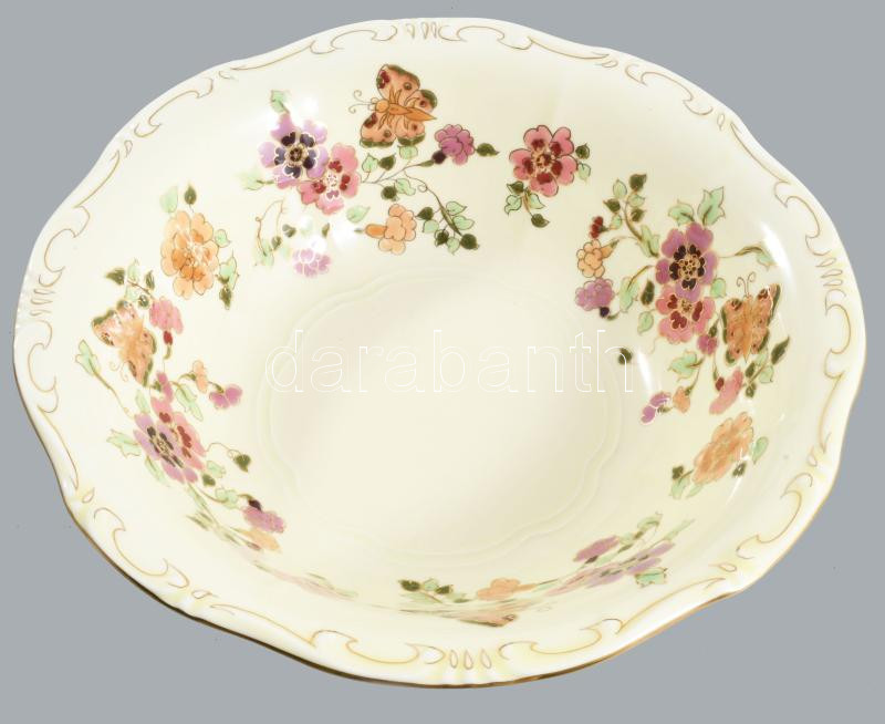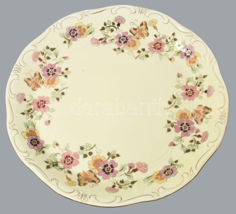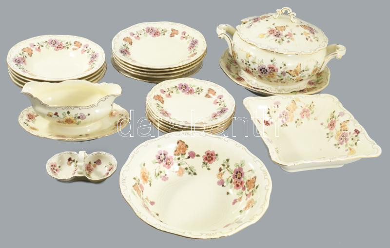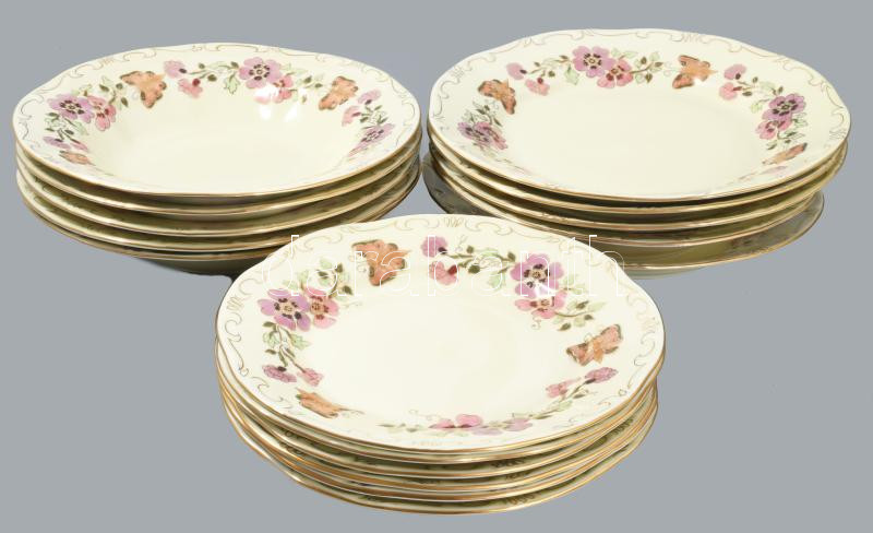 Zsolnay pillangó mintás hat személyes étkészlet plusz sótartó, (két lapos tányér hiánnyal) kézzel festett, jelzett, hibátlan.