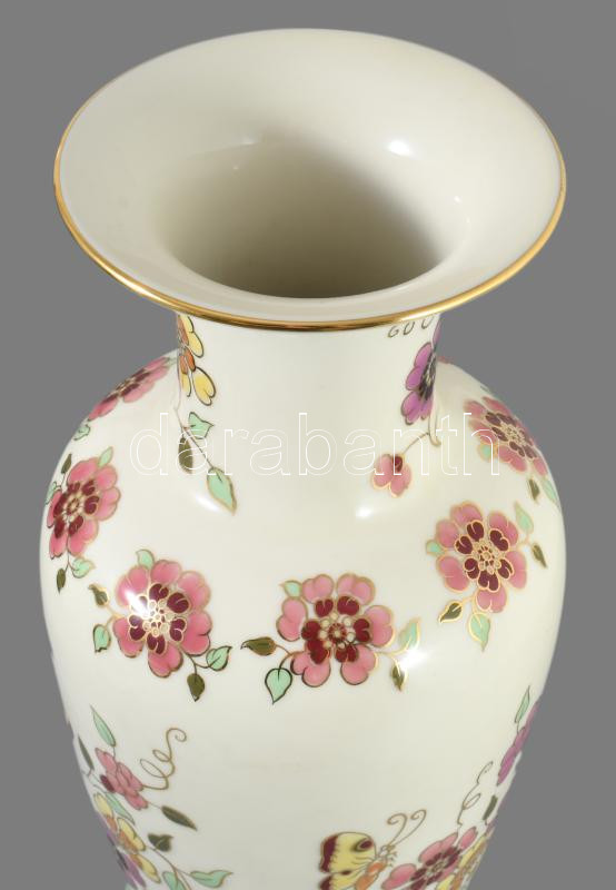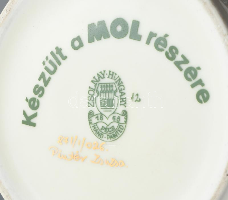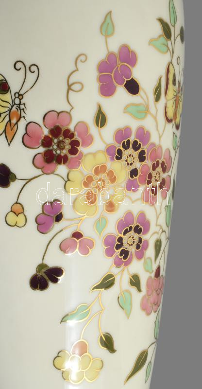 Zsolnay pillangó mintás nagy váza. Kézzel festett, jelzett, hibátlan 35 cm Alján készült a MOL részére felirattal