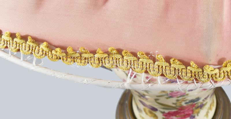 cca 1930 Porcelán lámpa, sérült búrával, bronz lábbal, m: 55 cm