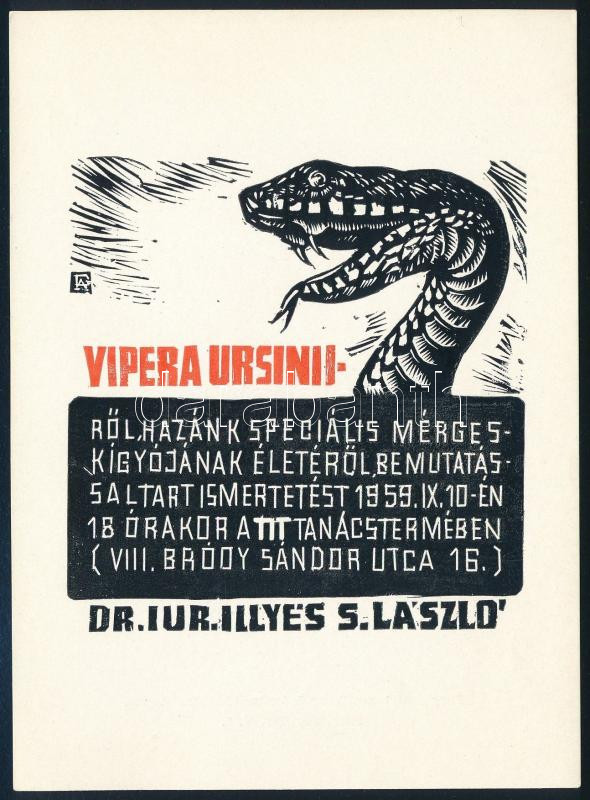 Fery Antal (1908-1994): Vipera Ursini, fametszet, papír, jelzett a metszeten, 14,5×10,5 cm