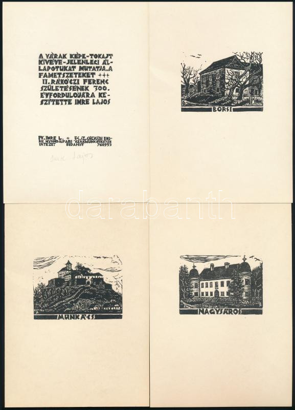 Imre Lajos (1936-): A kuruc szabadságharc tizenkét nevezetes vára, Imre Lajos fametszetei, 1976. 1+12 t. Fametszet, papír, előzéklapon ceruzás jelzéssel, lapméret: 14,5x10,5 cm