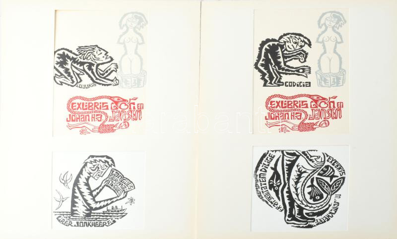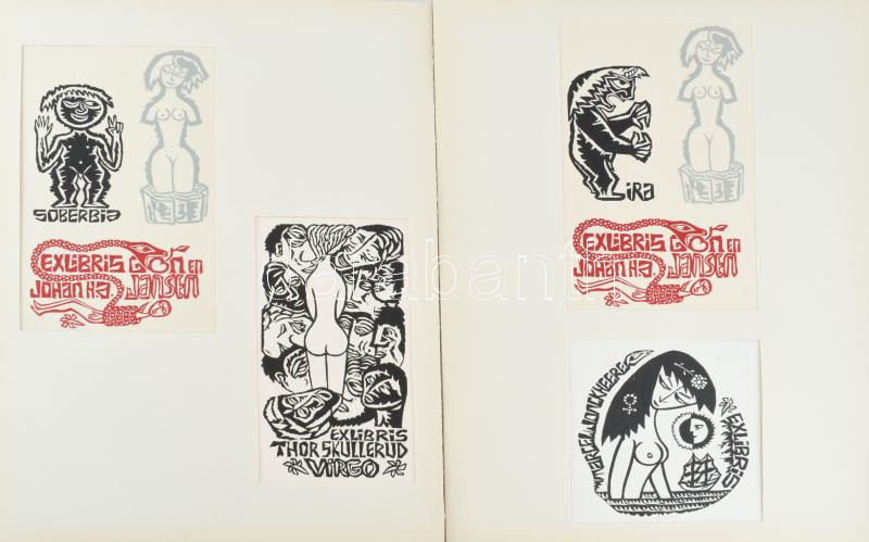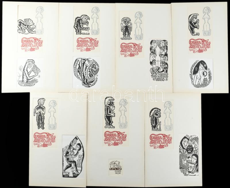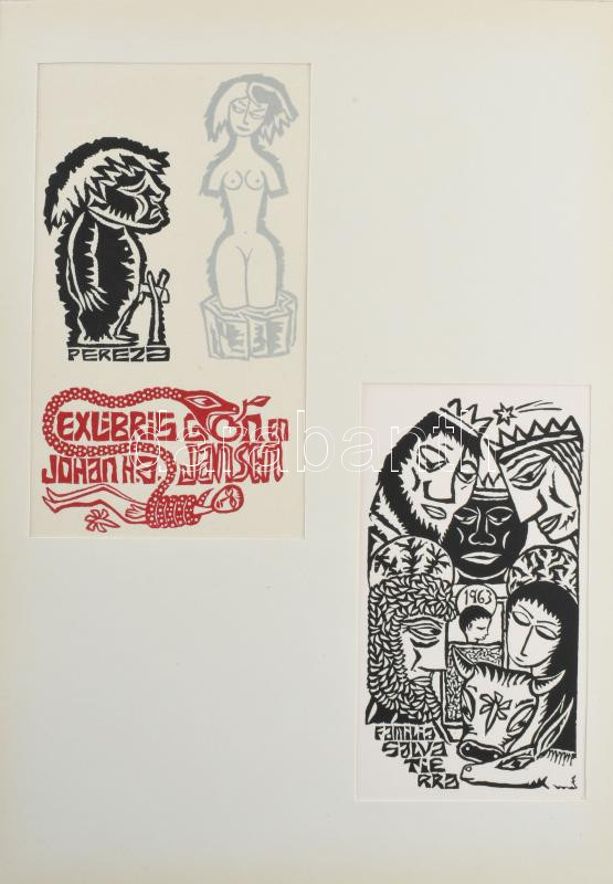 Julio César Salvatierra (1924-2007): 14 db ex libris és kisgrafika. Klf. technikák, papír, jelzés nélkül. Klf. méretekben. Paszpartuban.