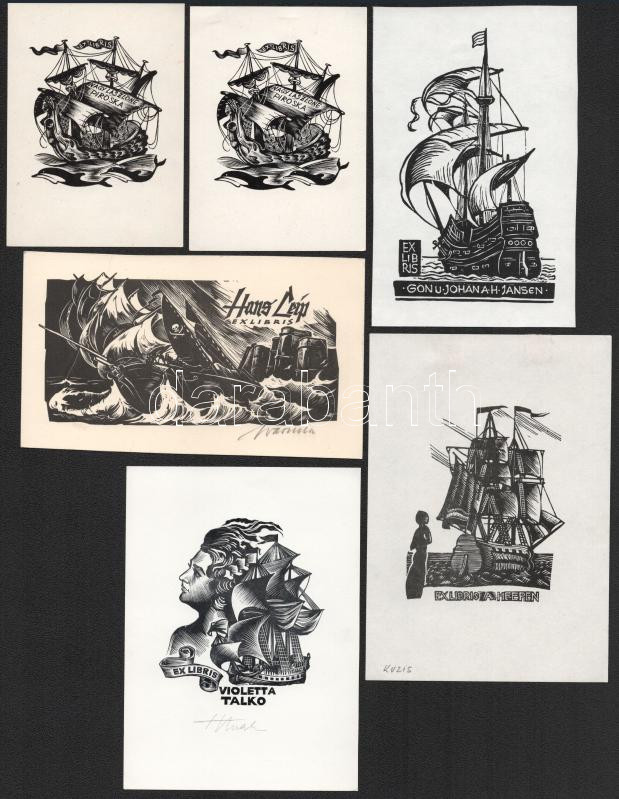 Klf. alkotók (Jaroslav Lukavsky, Jan Battermann, Borge Elwi Carlson, Henno Arrak stb.): 10 db hajó témájú ex libris és kisgrafika. Klf. technikák, papír, részben jelzett. Klf. méretekben.