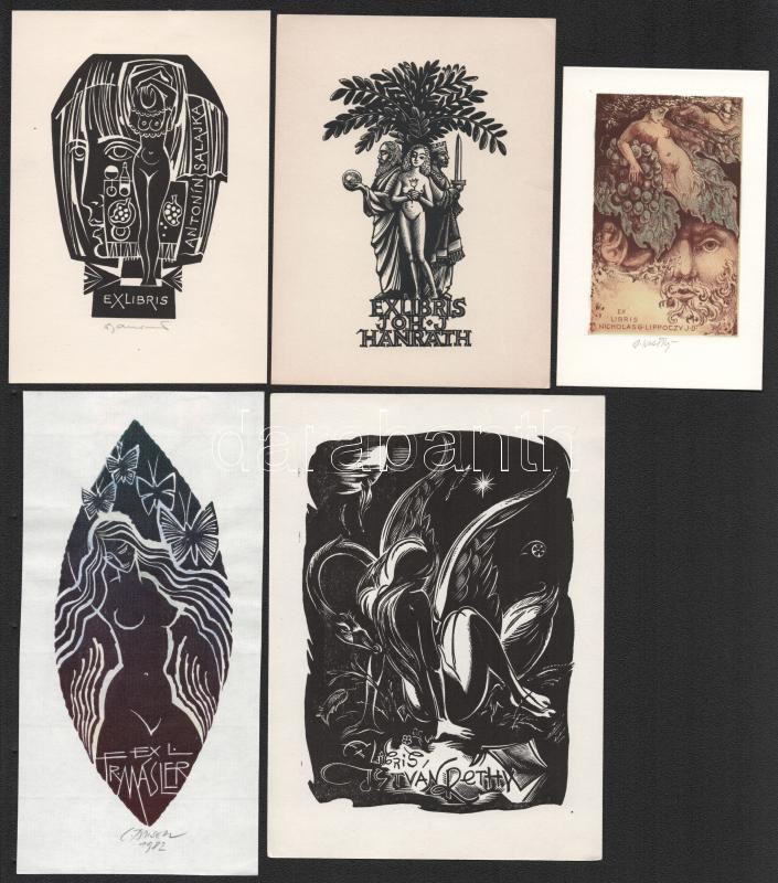 Klf. külföldi alkotók: 12 db erotikus ex libris és kisgrafika (közte duplummal). Klf. technikák, papír, részben jelzett, klf. méretekben.