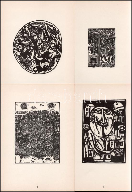 Magyar Kisgrafika 1975. Bp., 1975., Magyar Képzőművészek Szövetsége-Kisgrafika Barátok Köre, (Bp., Képcsarnok-ny.), 1 p.+28 (metszetek, közte: fametszetek, linómetszetek, rézkarcok, és rézmetszet, műanyagmetszetek, jelzettek) t. Ágotha Margit, Banga Ferenc, Bordás Ferenc, Bognár Zoltán, Diskay Lenke, Fery Antal, Gyulai Liviusz, Jurida Károly, Komjáthy Anna, Menyhárt József, Perei Zoltán, Reich Károly, Sterbenz Károly, Stettner Béla, Szabó M. László, Szűts Miklós, Tellinger István, Varga Nándor Lajos, Várkonyi Károly, Varsányi Pál, Csohány Kálmán, Gacs Gábor, Kovács Imre, Kőhegyi Gyula, Püspöky István, Raszler Károly, Rékassy Csaba, és Szemethy Imre munkái. Kiadói papírmappában. Számozott (114./100) példány.