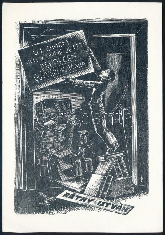 Menyhárt József (1901-1976): Réthy István, fametszet, papír, jelzett, 17×12 cm