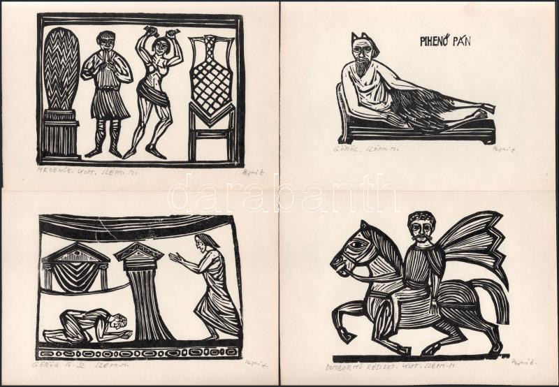 Perei Zoltán (1913-1992) : 13 db grafika A Szépművészeti Múzeumban található szoborról. Fametszet, papír, mindegyik jelzett. Lapméret: 22x15,5 cm.