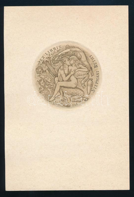 Tempinszky István (1907-1979): Ex libris Stephani Réthy (erotikus könyvjegy). Rézmetszet, papír, jelzett a metszeten, d: 6 cm