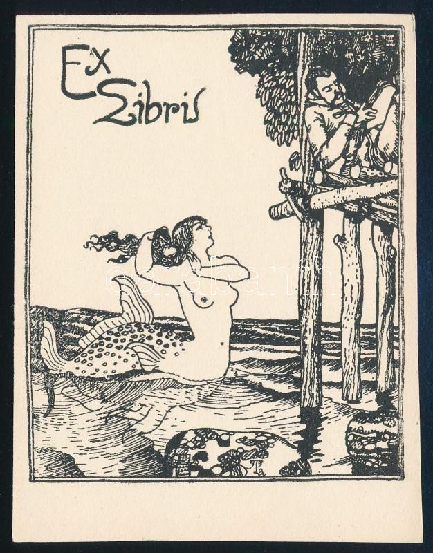 Tichy Gyula (1879-1920): Ex libris. Nyomat, papír, jelzett a nyomaton, 8,5x7 cm