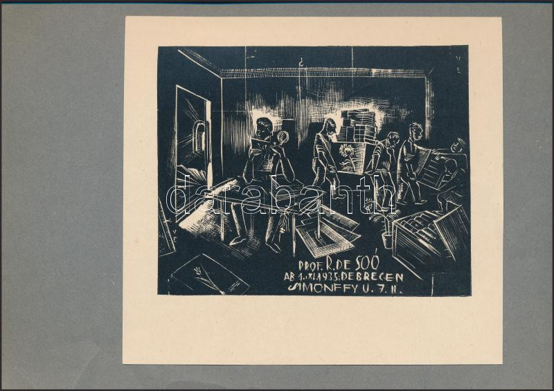 VE jelzéssel: Prof. R. de Soó, fametszet, papír, 13×12 cm