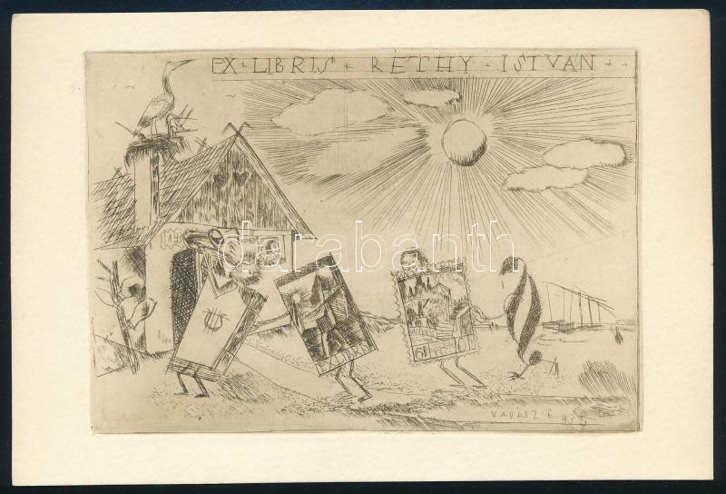 Vadász Endre (1901-1944): Ex libris Réthy István. Rézkarc, papír, jelzett a karcon, 8,5×12 cm