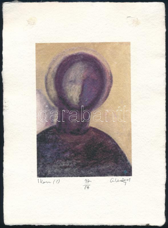 Aknay János (1949-2026 ): Ikon, computer print, merített papír, jelzett, sorszámozott 17/80. Lap 20x15 cm