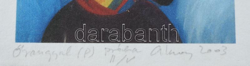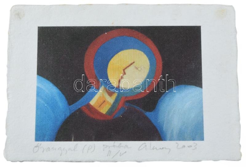 Aknay János (1949-2026 ): Őrangyal, computer print, merített papír, jelzett, művészpéldány. 11x16 cm