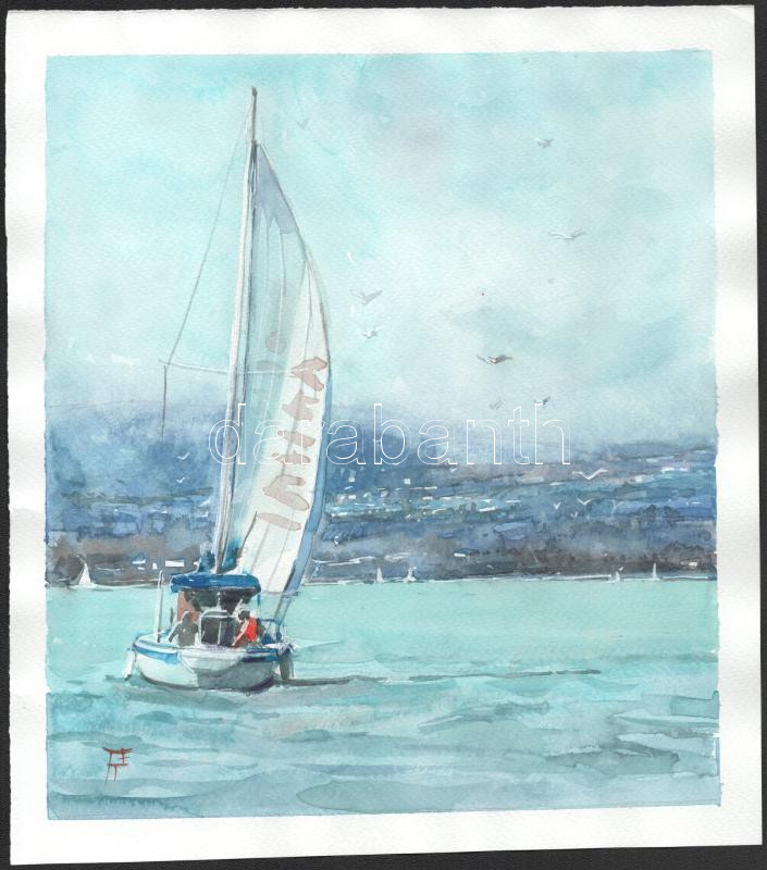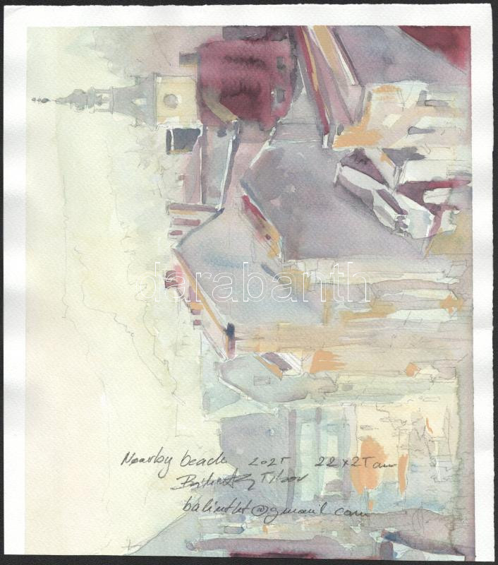 Bálinth Tibor (1965): Nearby beach (Balaton) Akvarell, papír. jelzett. 25x23 cm