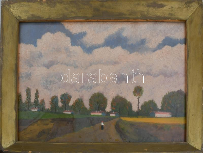 Böhm Lipót, Poldi (1916-1995): Hazafelé. Olaj, farost. Jelezve jobbra lent. Hátoldalán autográf felirattal. 31x41 cm. Fakeretben.