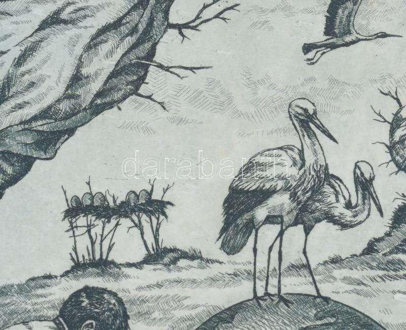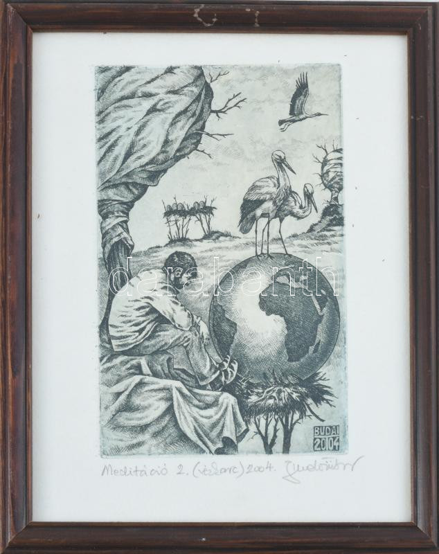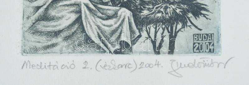 Budai Tibor (1946-): Meditáció 2. Rézkarc, papír, jelzett, üvegezett fakeretben, 19×12,5 cm