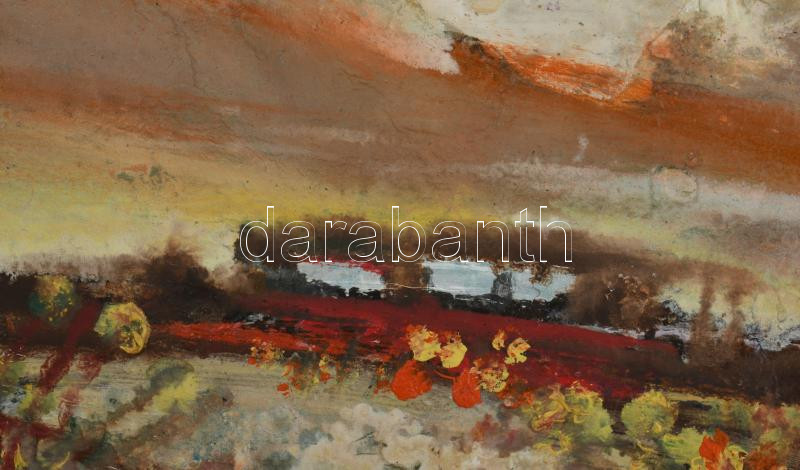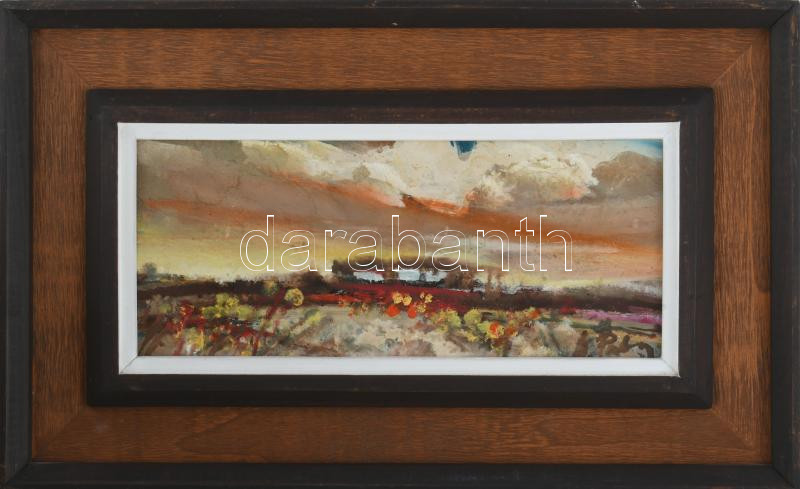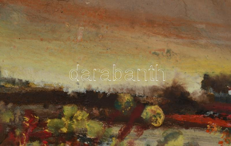 Cs. Pataj Mihály (1921-2008): Alkonyodik. Olaj, farost, jelzett, hátoldalán autográf felirattal, fakeretben, 14×30 cm