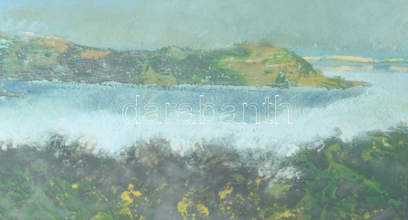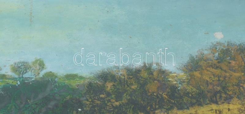 Dallos Ferenc (1928-2001): Folyópart. Olaj, farost, jelezve jobbra lent. Hátoldalán Képcsarnok Vállalat címkéivel Dekoratív üvegezett keretben 60x90 cm