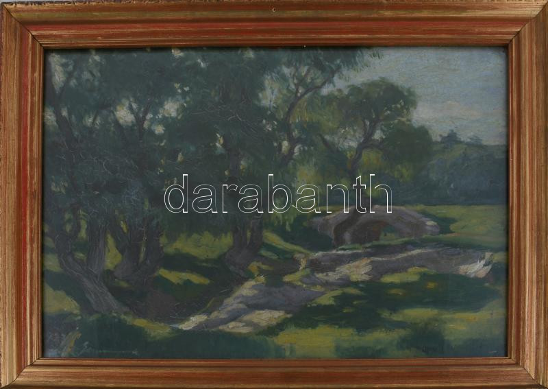 Einczinger Ferenc (1879-1950): Esztergom, Zsidódi híd. Olaj, karton, jelzett. Üvegezett fakeretben. 30x42 cm