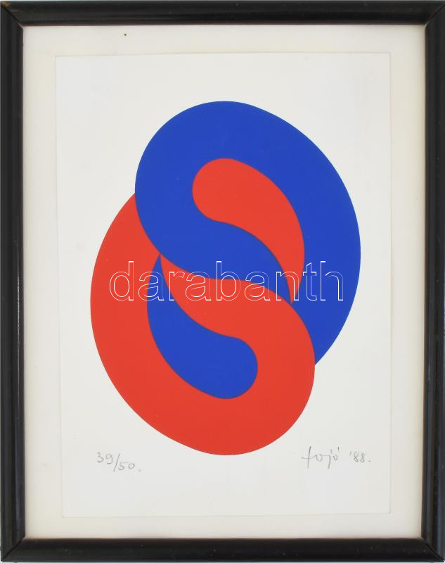 Fajó János (1937-2018): Vörös és kék formák. Szitanyomat, karton, felragasztva. Jelzett, számozott (39/50), 23x15 cm Keretben