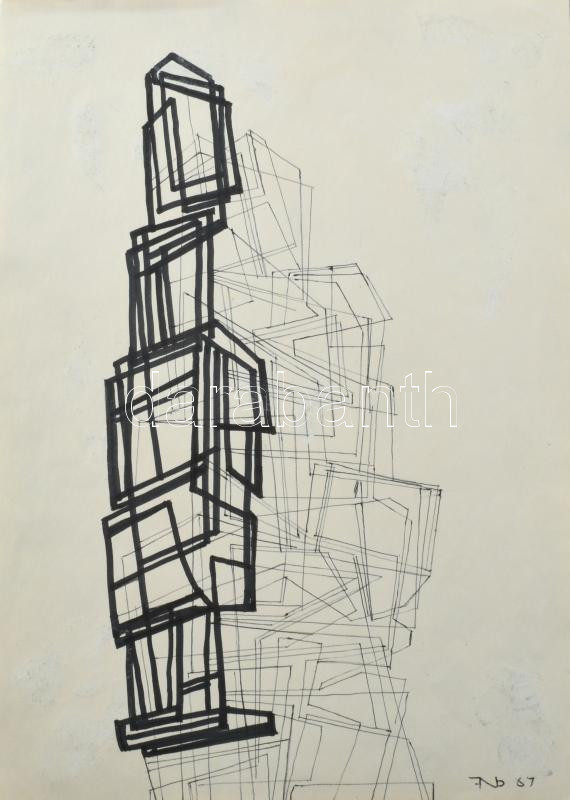 Fekete Nagy Béla (1905 - 1983) : Alakzatok. Tus, papír, jelzett. 30x20 cm