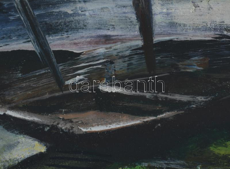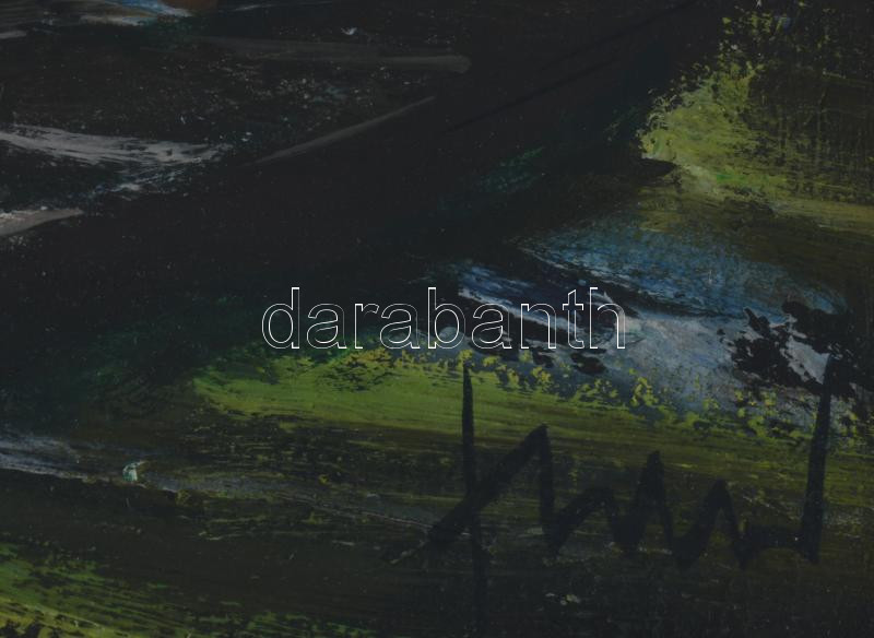 Fodor József (1935-2007): Esti fények. Olaj, farost, jelzett, üvegezett fakeretben, hátoldalán a művész autográf feliratával, 30x40 cm