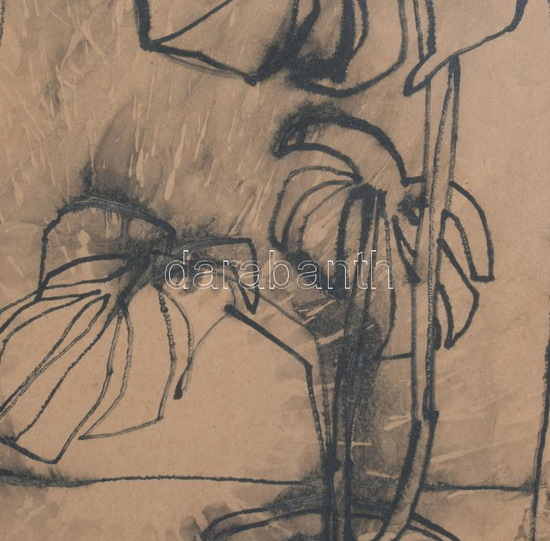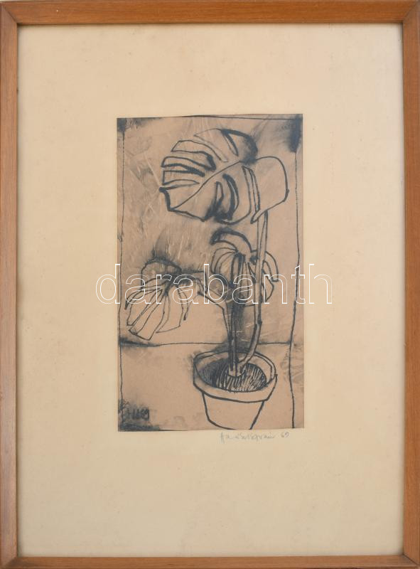 Haász István (1946): Csendélet, 1969. Tus, papír, jelzett. Üvegezett fakeretben. 20,5×11,5 cm.