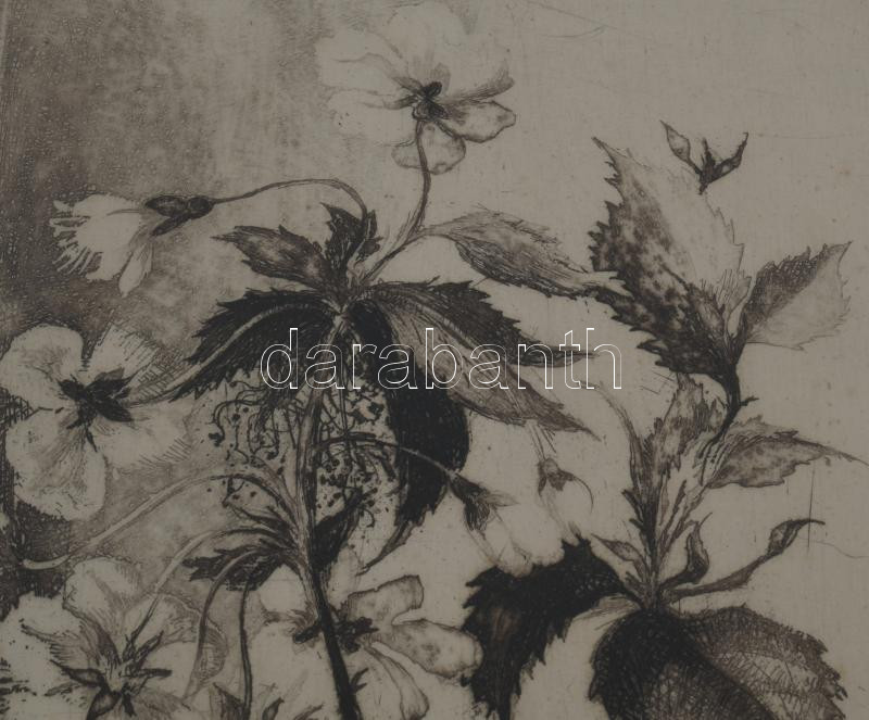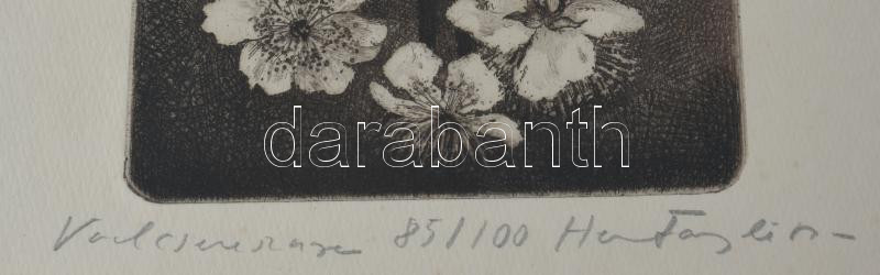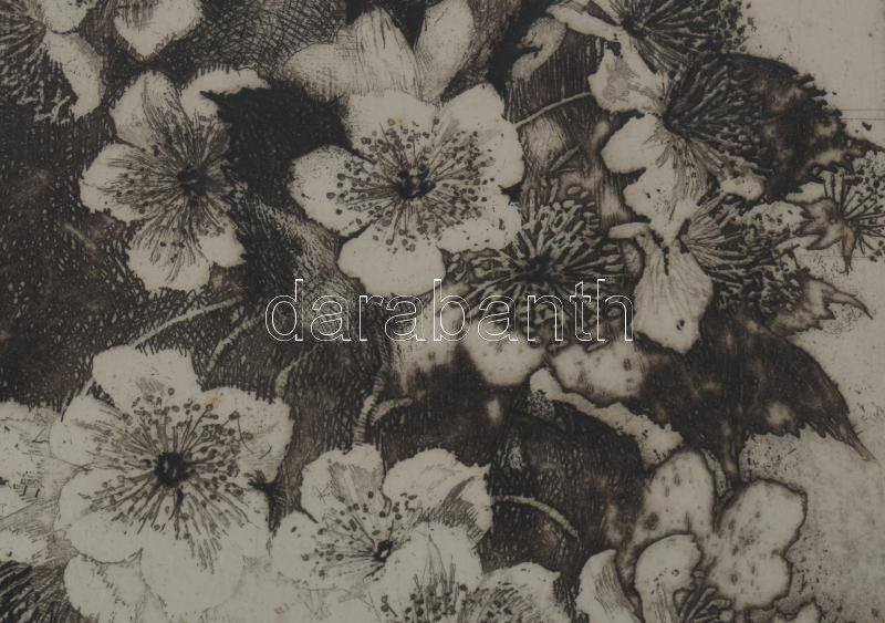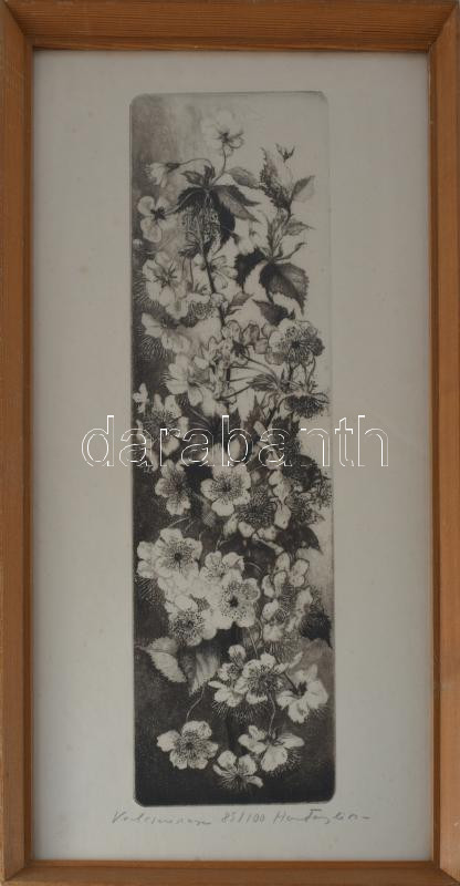 Hertay Mária (1932-2018): Vadcseresznye. Rézkarc, papír, jelzett, számozott (85/100), üvegezett fakeretben, 49×14 cm